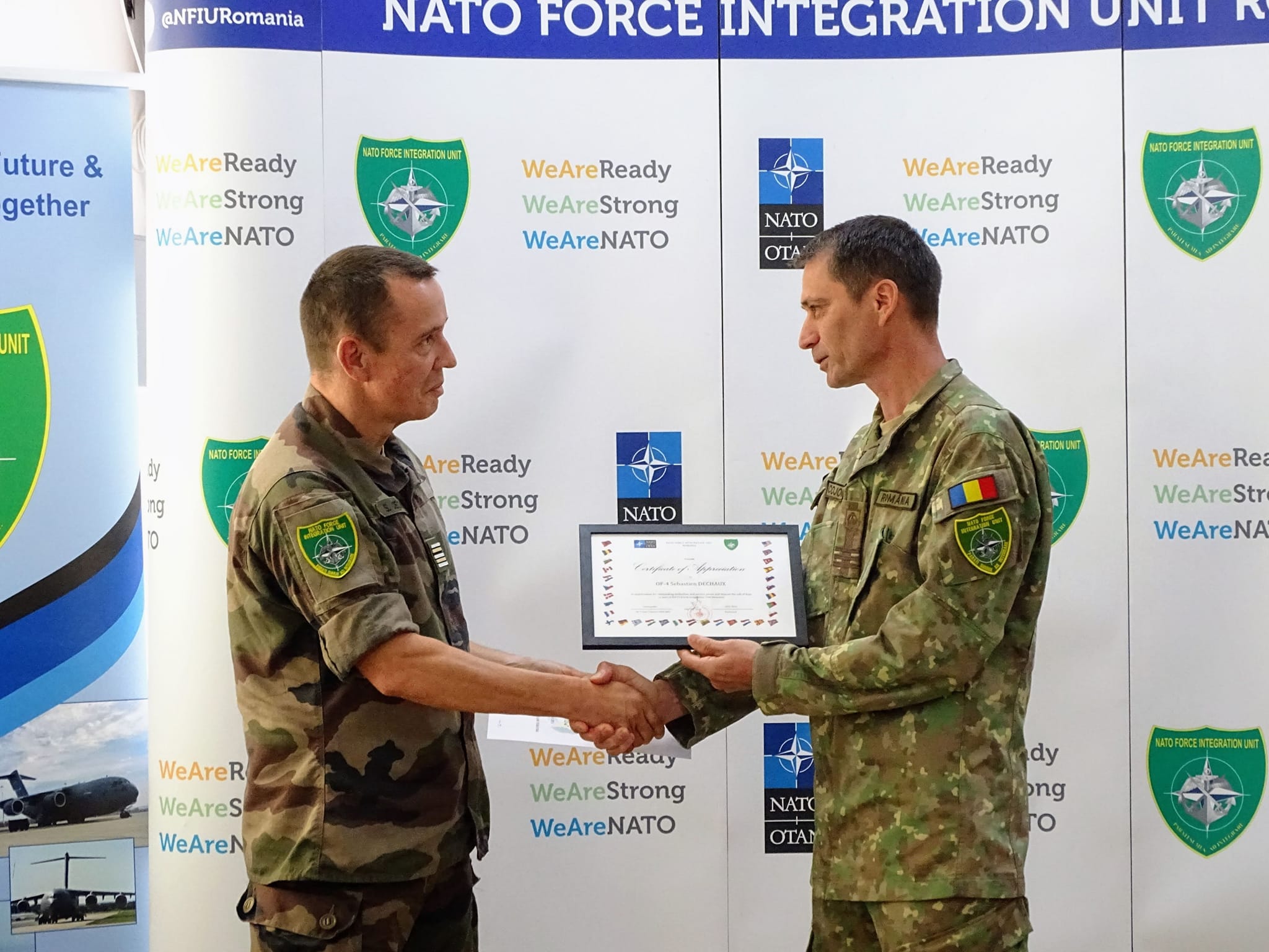 Today, we bid farewell to LTC Sebastien Dechaux , MSGT Niamir DeMarco and SFC Viktor Nagy , who completed their tours at NFIU Romania. Colleagues gathered to honor their outstanding service and contributions to our mission. Best wishes in your future endeavors! #WeAreNATO #FarewellCeremony #NFIURomania